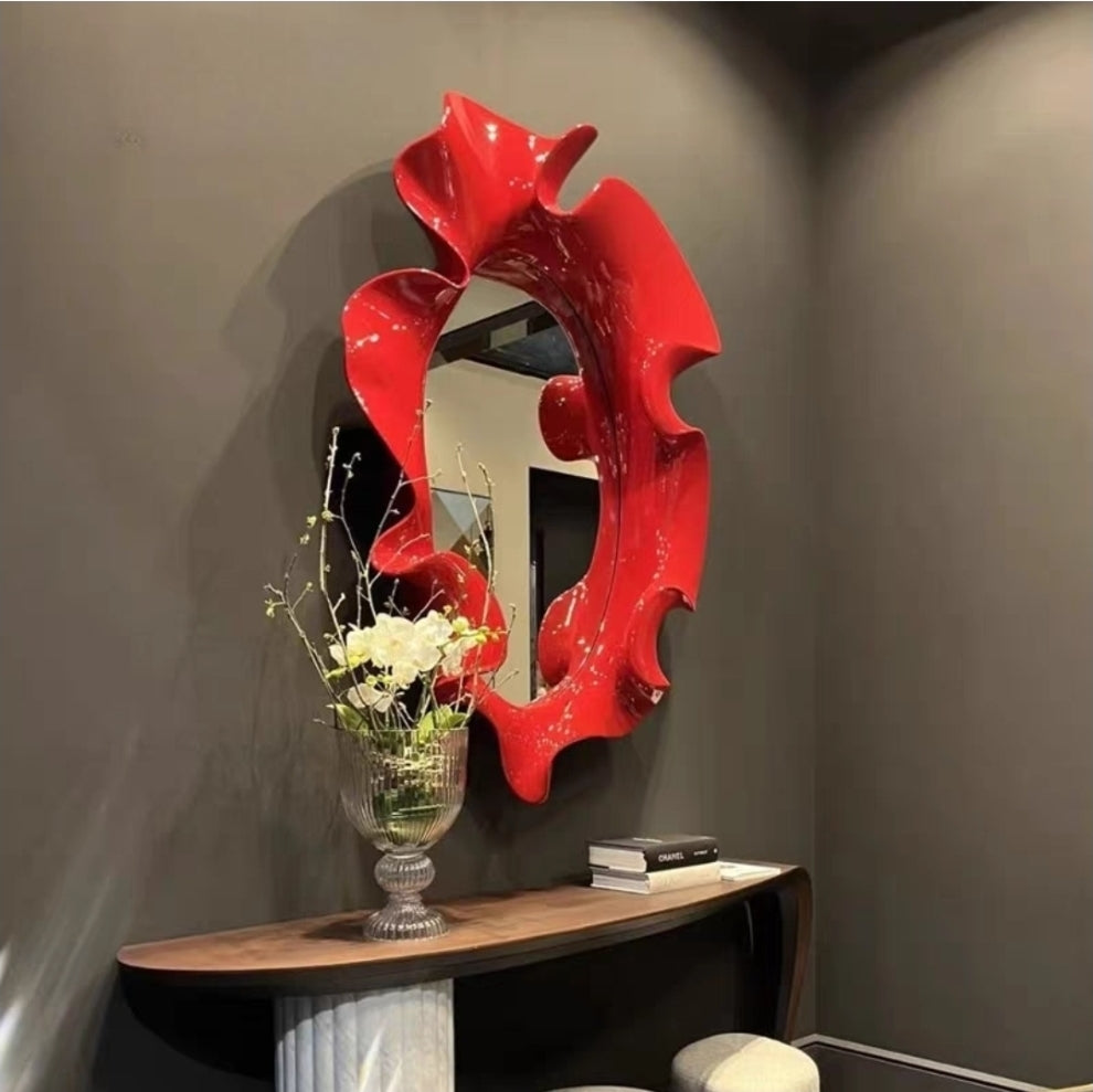 Artfully bold. This handmade mirror features a dramatic, sculptural red resin frame that adds a striking statement to any space. A true collectible piece for interiors that speak volumes.